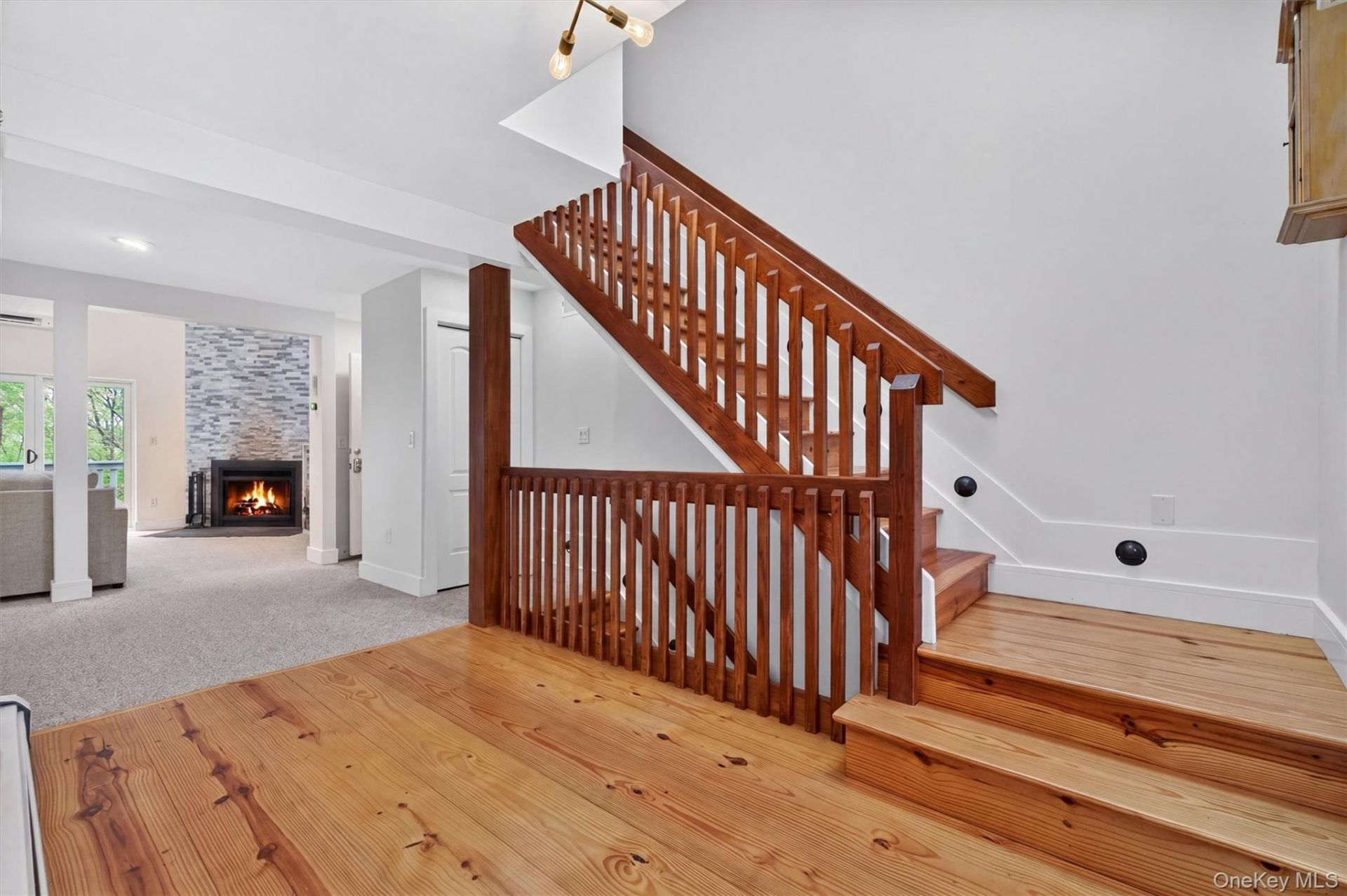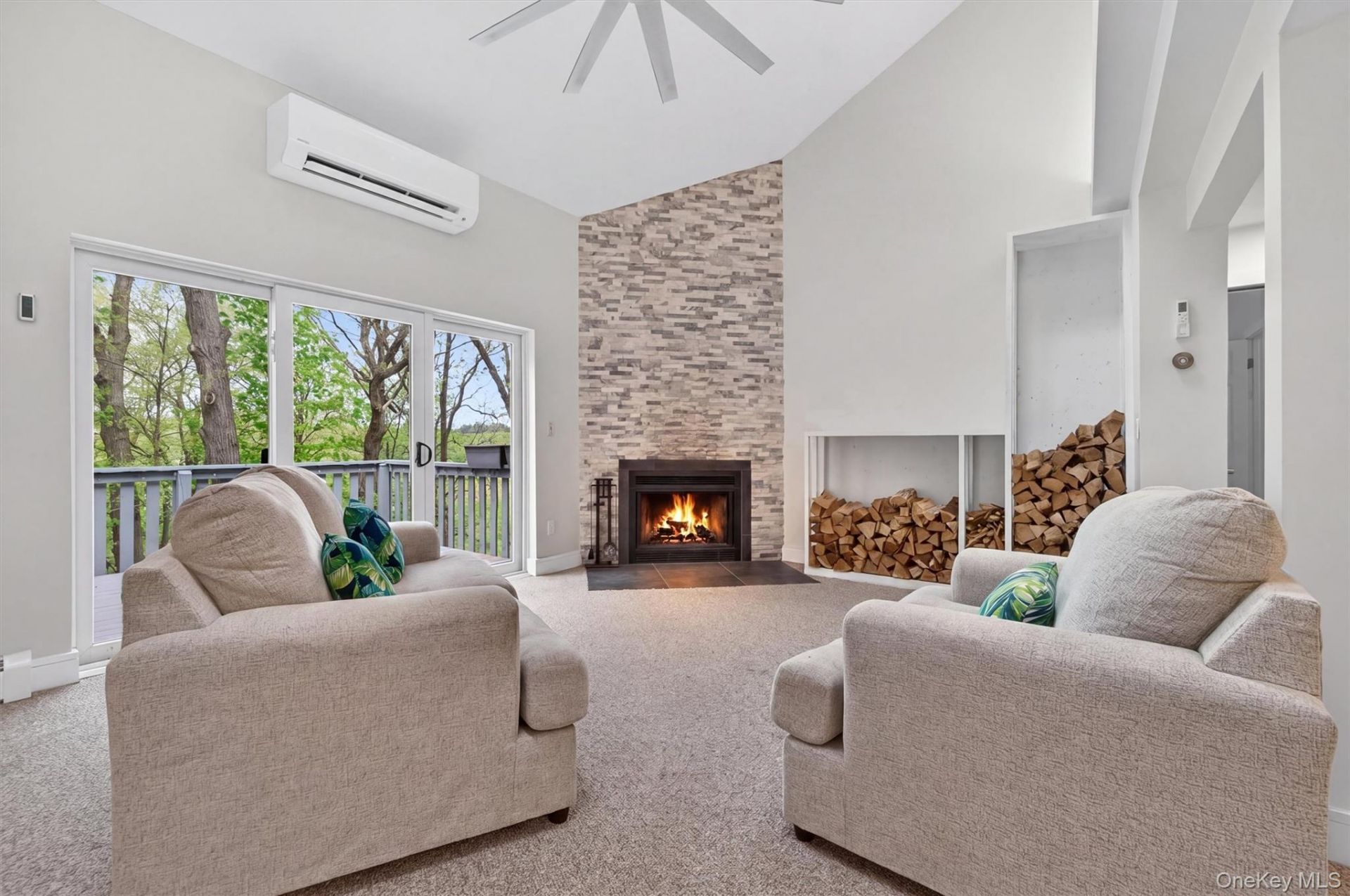 Treat yourself to elegant townhome living with high-end design and thoughtful updates throughout. This beautifully updated home checks all the boxes, featuring a light-filled, open layout with soaring vaulted ceilings, sky lights. The inviting living room boasts a wood-burning fireplace and a triple glass slider that opens to a private deck with seasonal views of the Esopus River and surrounding mountains.The custom-designed kitchen is both stylish and functional, offering thoughtful storage, gas cooking for the home chef, and a smart refrigerator (Alexa answering your questions). Natural light pours in through the large kitchen window, illuminating the warm butcher block countertops.The first-floor primary suite delivers both convenience and luxury, complete with a spa-like ensuite bathroom. Unwind in the custom-designed double-headed steam shower, enjoy the comfort of heated floors, and take advantage of double sinks, a stunning floor-to-ceiling medicine cabinet, and a Toto bidet toilet.The lower level with the third full bath, game room gives you access to your patio. Electric fireplace offers ambiance. Laundry room with slop sink and more cabinet space also houses the utilities. New Navien 5 zone heating and back up electrical system in case of power outages.Plenty of built in storage, custom window treatments, new Lenox splits, back up electrical system. One car garagehas a 240 EV charger.Historic Kingston is just across the Esopus bridge.Make this special townhouse yours.
